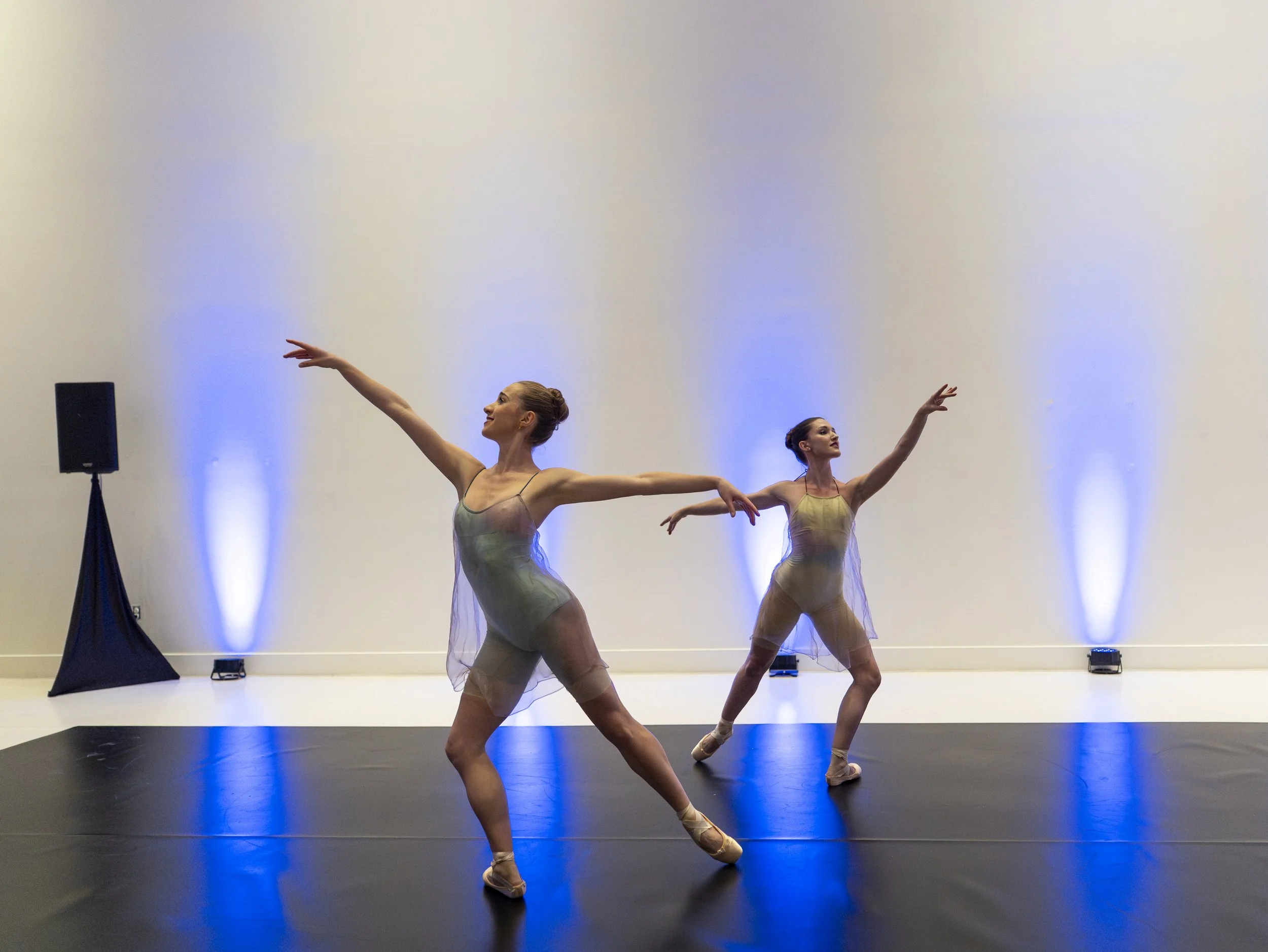 Attendees got a tour of the gallery and saw a performance of nine works including an excerpt of Chasing Shadows by Laine Habony presented by Pointeworks featuring two dancers Sophie Williams and AvaRose Dillon.